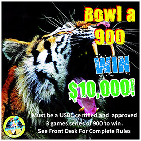 Kingpin’s Alley prides itself on being a great scoring bowling center.  In the history of ABC/USBC there have only been 37 approved 900 series thrown.  Kingpin’s Alley is giving $10,000 to the first bowler during the 2021-2022 season to shoot a perfect 900 three game series.  The contest is open to all certified league and tournament bowlers.  The 900 series must be shot in a certified league or tournament and it must be approved and recognized by the United States Bowling Congress.